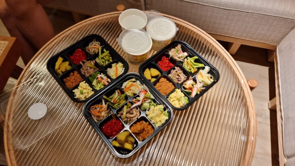 Day 4 started with the breakfast provided by the hotel. We collected it from the reception and brought it up to the room.