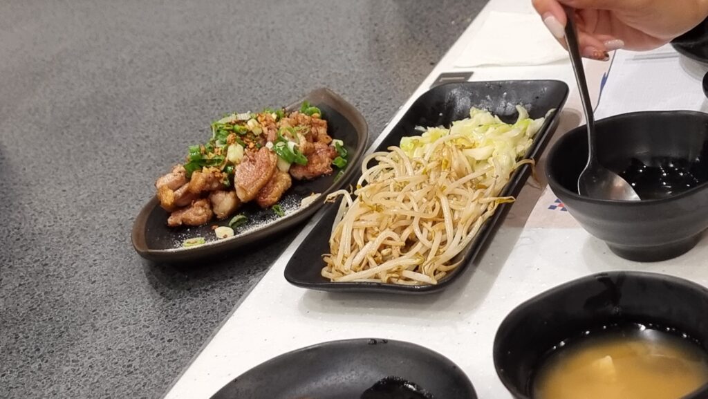 The side dishes came first, but the mains took quite a while, as there was only one chef, and the restaurant was quite full.