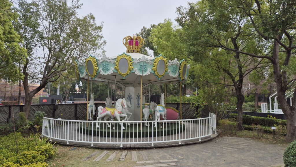The hotel has an outdoor Carousel, a Wedding area, a playground, and a kids’ driving area..