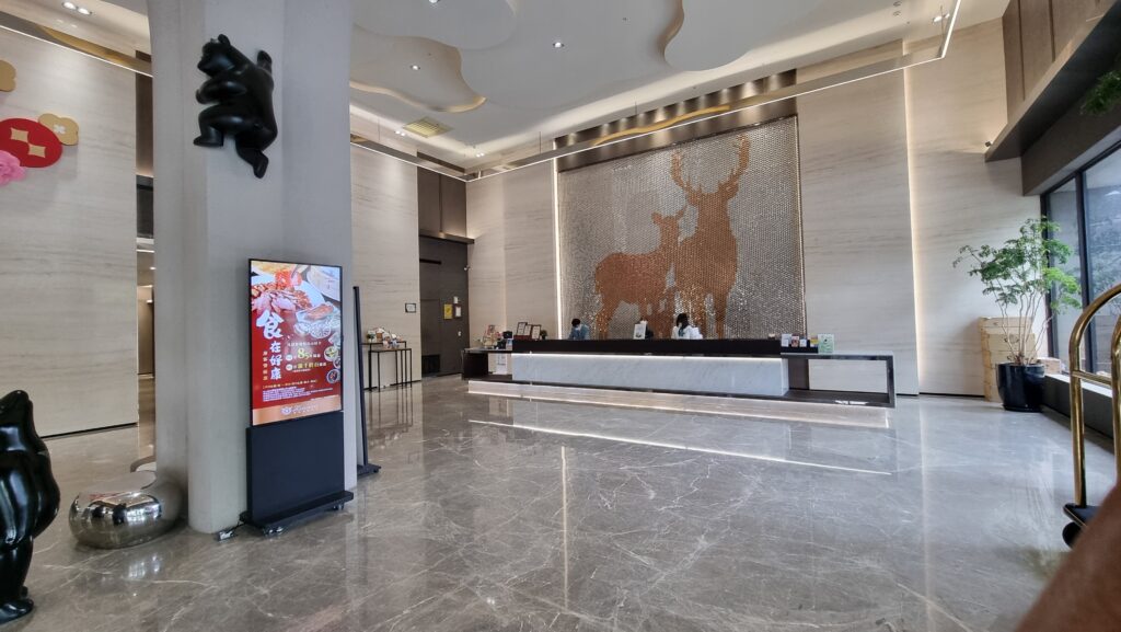 They also have a big and nicely decorated reception area. The Black Bear is their mascot. From afar, you can see a big yellow bear on the top of the hotel too.