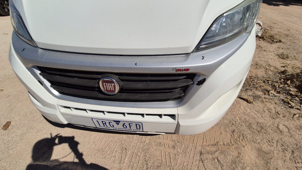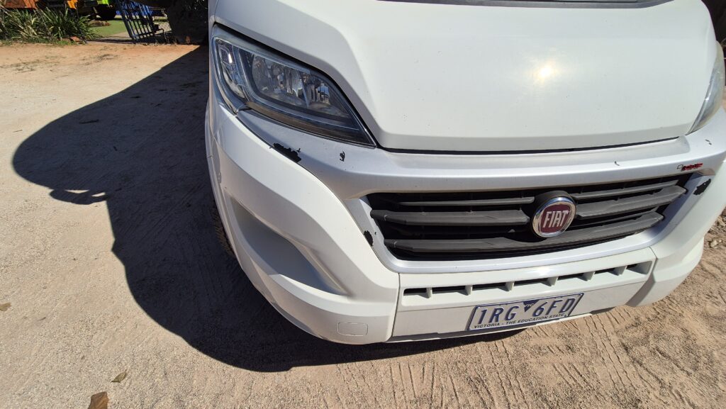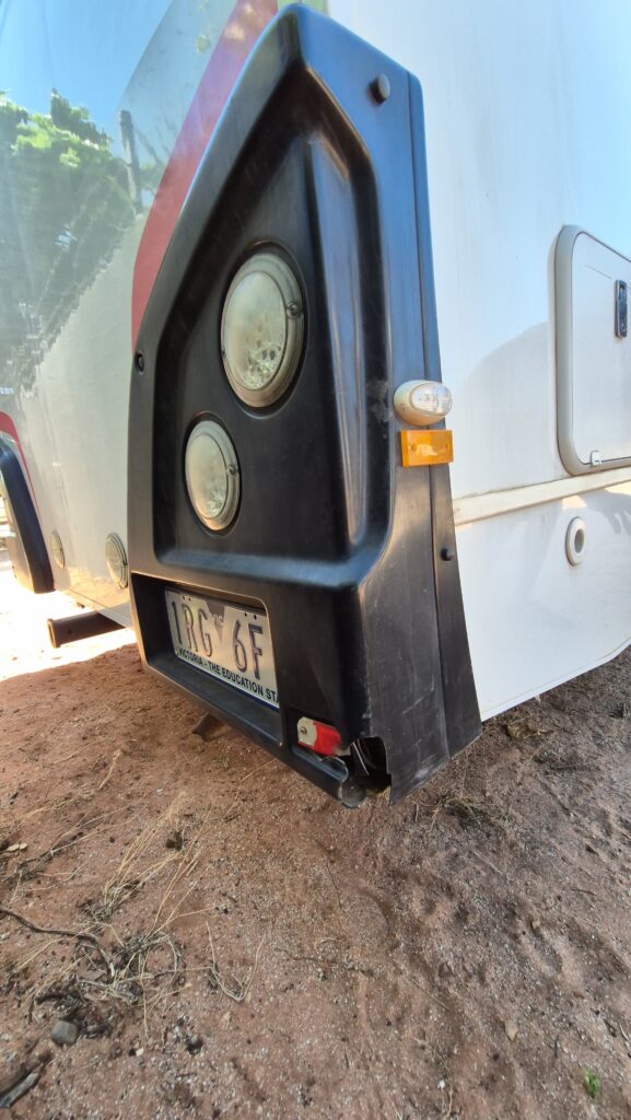 As we inspected our assigned Motorhome, we noticed a couple of major damages and highlighted them to the office staff, like this broken tail bumper.
