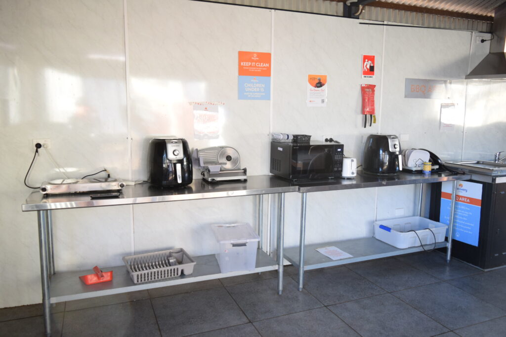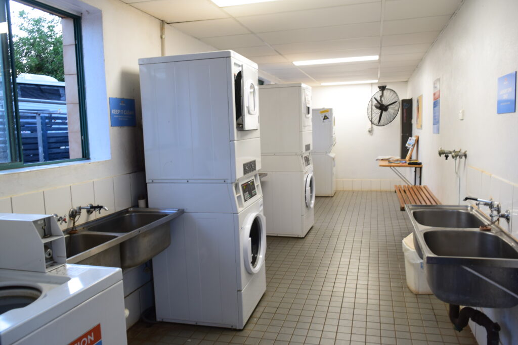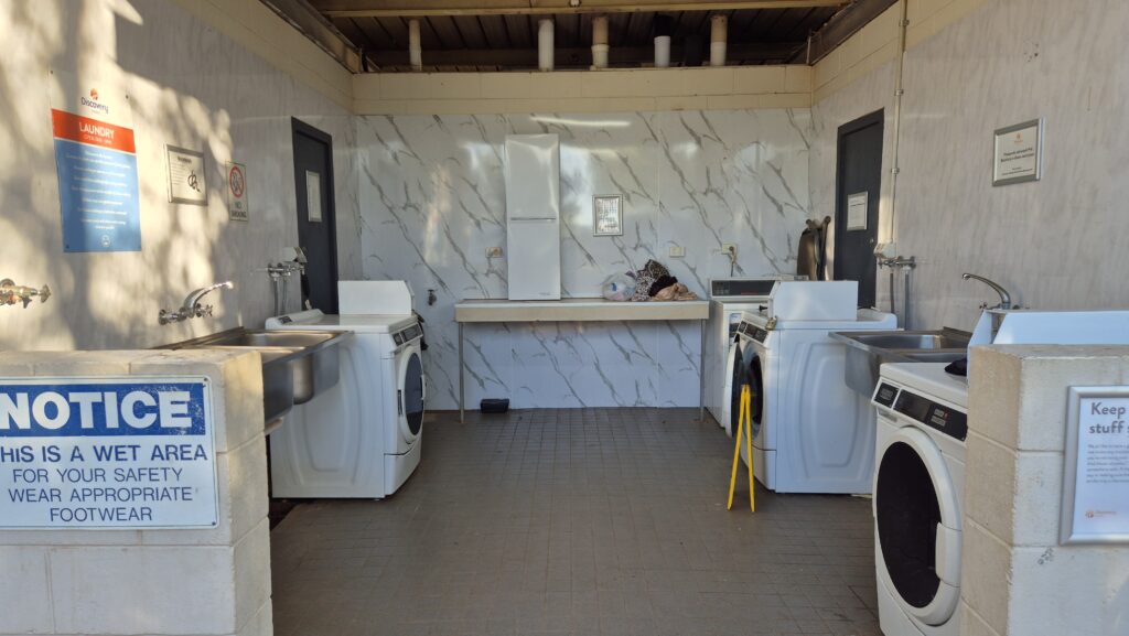Laundry area and camp kitchen.