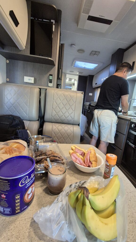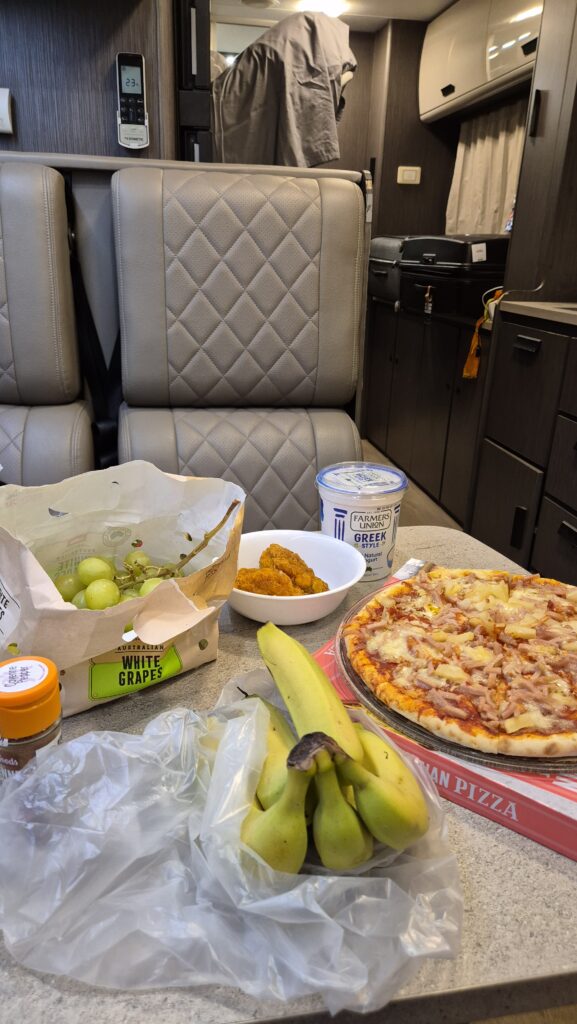 We cooked our food inside the Motorhome instead.