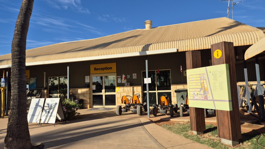 Finally, we arrived at RAC Exmouth Cape Holiday Park. The mini buggies outside are for rental.