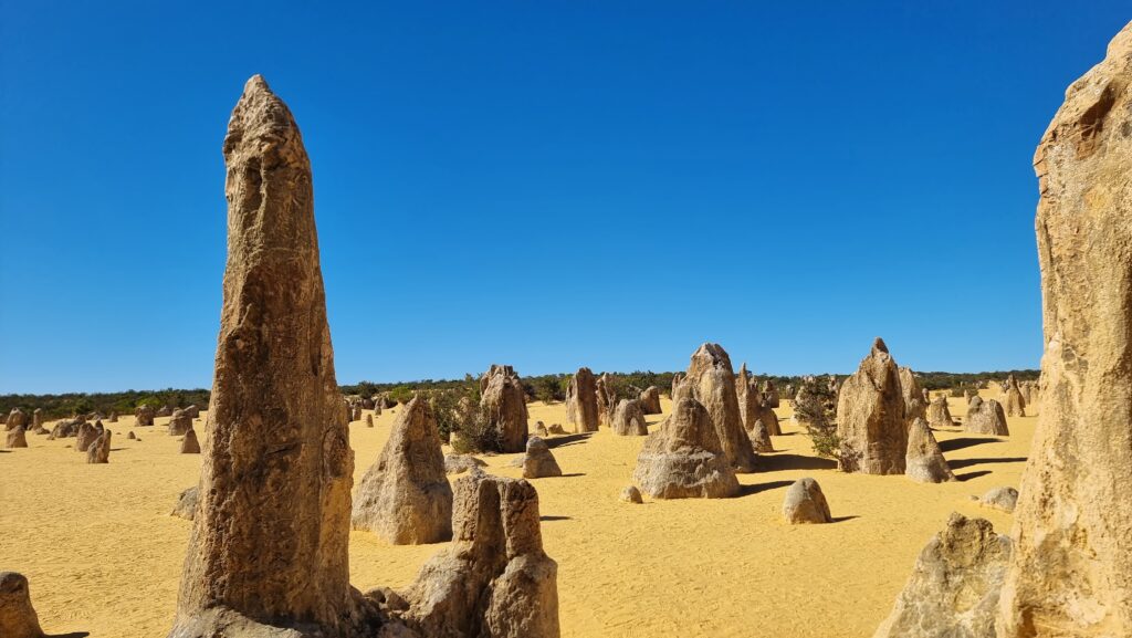 Located around 200 kilometres north of Perth, near the coastal town of Cervantes, this extraordinary landscape is filled with thousands of ancient limestone pillars that seem to emerge straight out of the desert. Some stand just a few centimetres tall, while others tower several metres high, creating a scene that feels almost otherworldly.