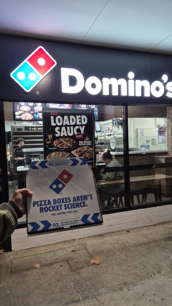 Did not find anything interesting there and ended up at Domino’s Pizza.
