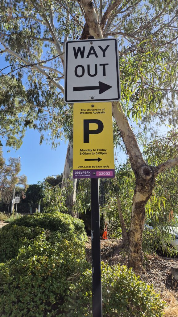 We found a parking space at the University of Western Australia.