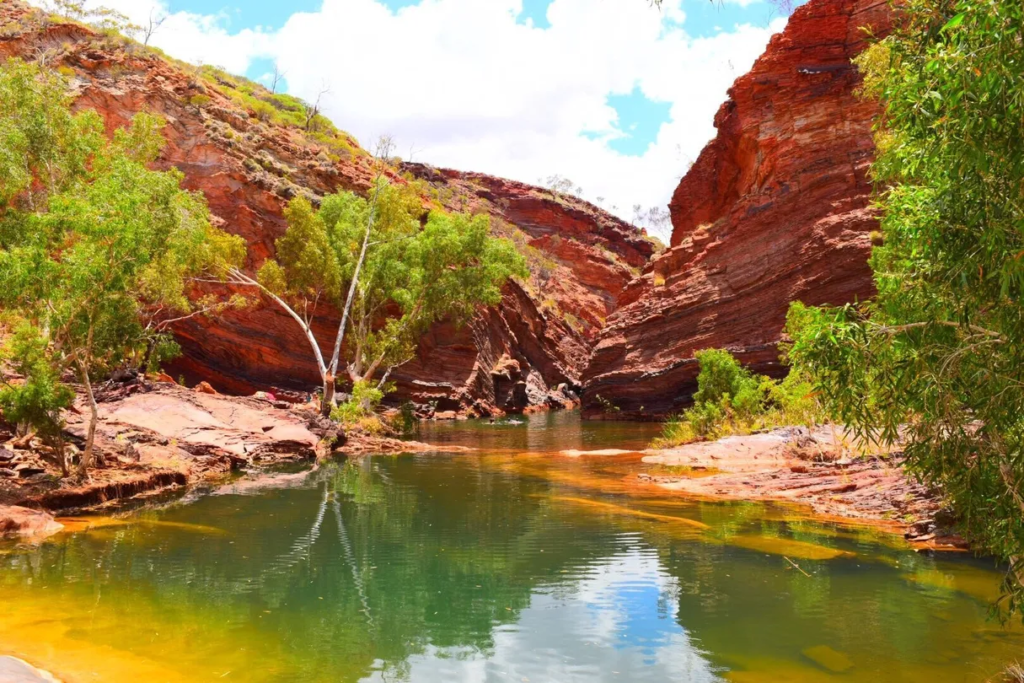- Karijini National Park (Pilbara): Deep gorges, refreshing waterholes, and dramatic red rock landscapes perfect for hiking and swimming.